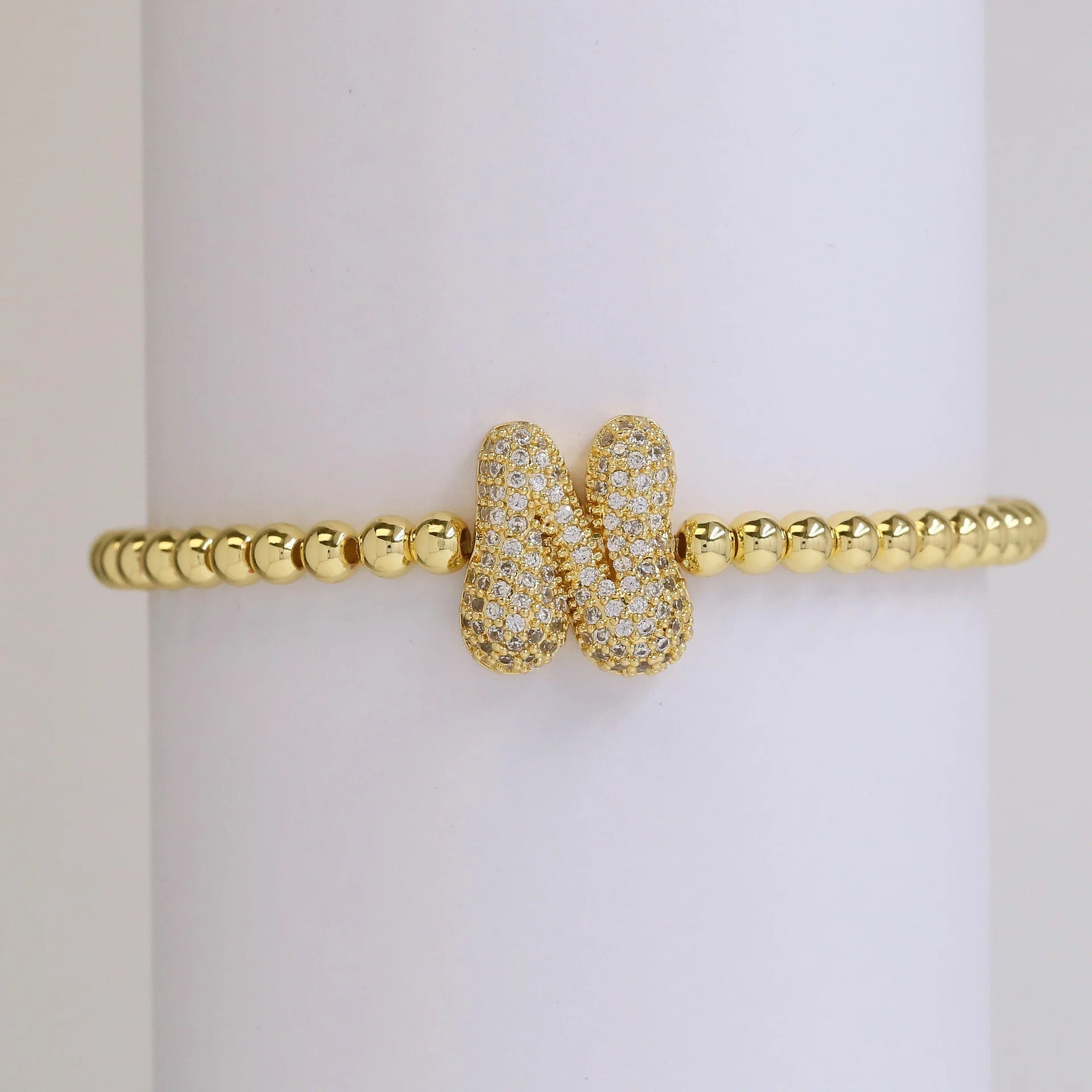 Personalize your style with the Beaded Bubble Initial Bracelet. This charming piece features a string of delicate bubble-shaped beads paired with a customizable initial charm, adding a touch of individuality and elegance. Crafted from high-quality materials for durability and a smooth, polished finish, the bracelet offers a comfortable and adjustable fit for everyday wear. Whether as a thoughtful gift for a loved one or a unique addition to your own collection, this bracelet is perfect for those who appreciate stylish and meaningful jewelry with a personal touch.